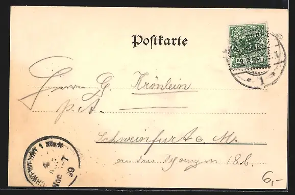 alte Ansichtskarte, gelaufen 1899, guter Zustand