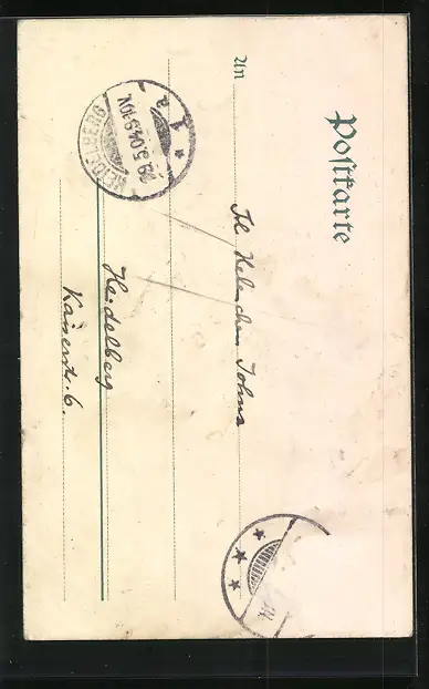 alte Ansichtskarte, gelaufen 1904, Briefmarke entfernt, rückseitig Oberflächenschaden, guter Zustand