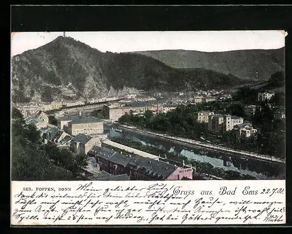 AK Bad Ems, Ortsansicht aus der Vogelschau