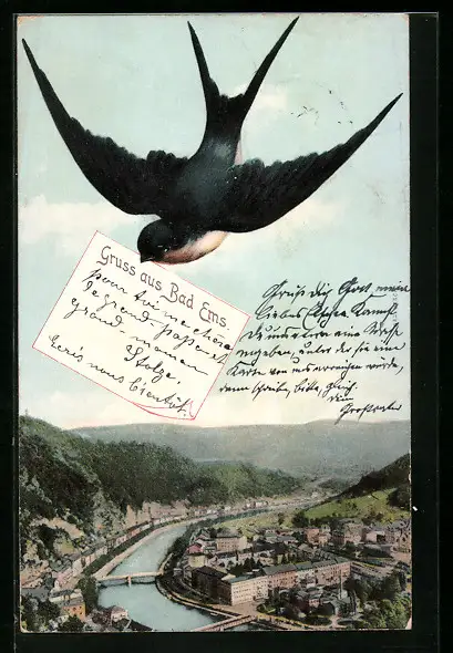 AK Bad Ems, Ortsansicht mit Schwalbe