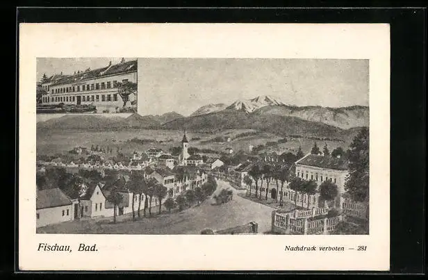 AK Bad Fischau, Hotel, Ortspartie mit Strasse