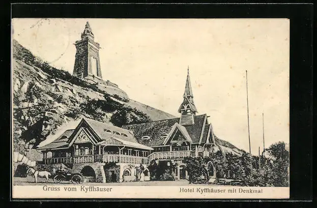 AK Bad Frankenhausen, Hotel Kyffhäuser mit Denkmal