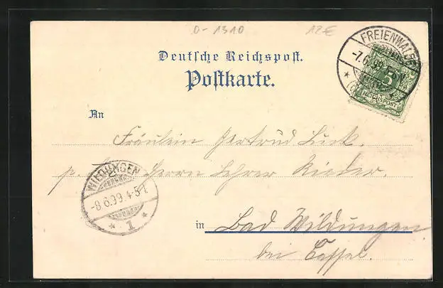 alte Ansichtskarte, gelaufen 1899, guter Zustand