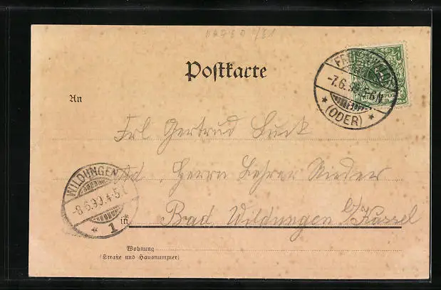 alte Ansichtskarte, gelaufen 1899, Stempelspur, guter Zustand