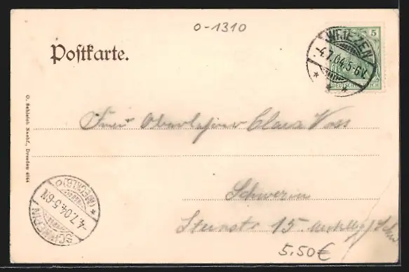alte Ansichtskarte, gelaufen 1904, guter Zustand