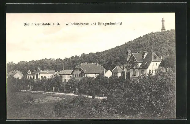 AK Bad Freienwalde a. O., Wilhelmstrasse und Kriegerdenkmal