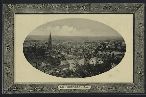 AK Bad Freienwalde a. Oder, Ortspanorama im Holzrahmen