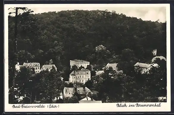 AK Bad Freienwalde, der Blick auf die Häuser im Brunnental