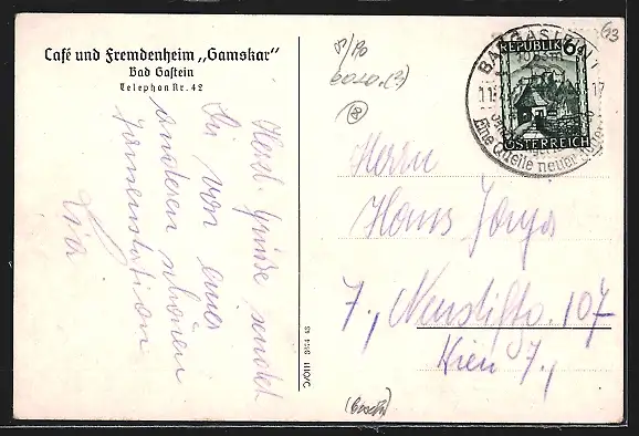 AK Bad Gastein, Hotel-Cafe Gamskar mit Gebirgspanorama