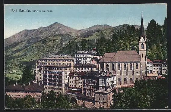 AK Bad Gastein, Teilansicht mit Kirche
