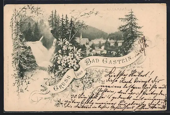 AK Bad Gastein, Wasserfall, Ortsansicht