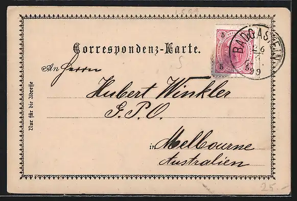 alte Ansichtskarte, gelaufen 1899, Eckknick oben re., guter Zustand