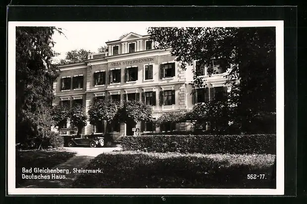 AK Bad Gleichenberg, Deutsches Haus hinter einer Hecke