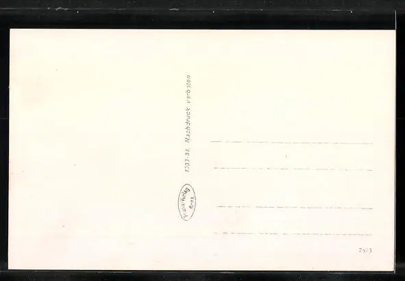Personenbezogene Daten auf der Rückseite der Karte wurden durch blauen Textmarker unkenntlich gemacht. Die blauen Stellen sind auf die Vorderseite durchgeweicht und wirken sich negativ auf das Postkartenfoto aus