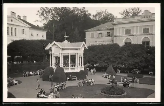 AK Bad Gleichenberg, Kurpark mit Pavillon und Besuchern