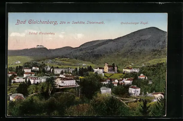 AK Bad Gleichenberg, Ortsansicht mit Schloss Gleichenberg u. Gleichenberger Kogel