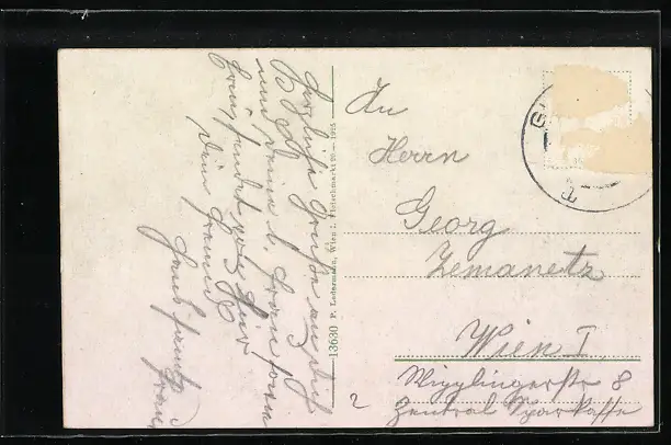 alte Ansichtskarte, gelaufen, Briefmarke entfernt, rückseitig Oberflächenschaden, guter Zustand