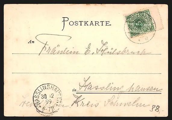 alte Ansichtskarte, gelaufen 1899, guter Zustand
