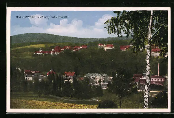 AK Bad Gottleuba, Bahnhof mit Heilstätte
