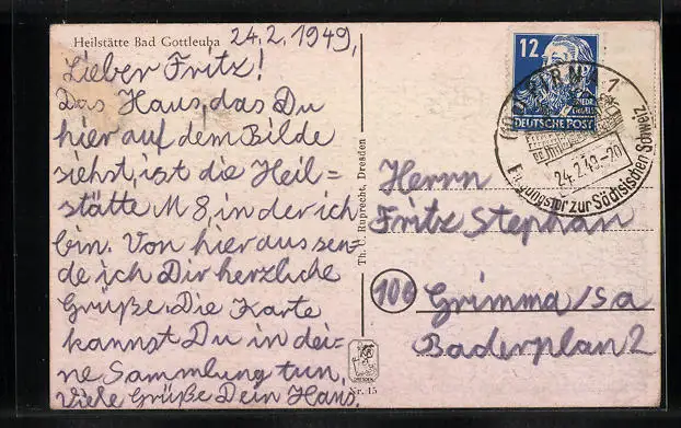 alte Ansichtskarte, gelaufen 1949, guter Zustand