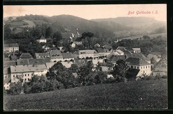AK Bad Gottleuba i. Sa., Ortsansicht von einem Berg aus gesehen