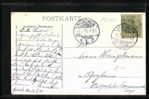 alte Ansichtskarte, gelaufen 1905, guter Zustand
