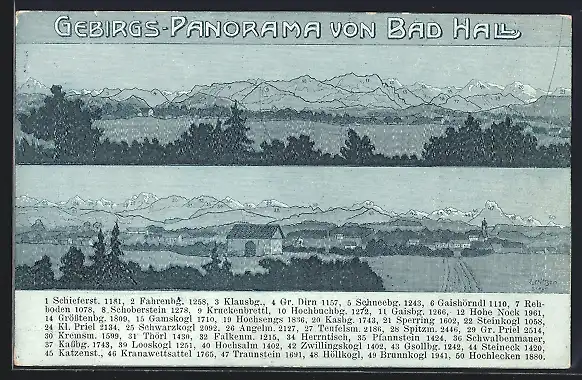 AK Bad Hall, Gebirgs-Panorama mit Kl. Priel, Pfannstein und Traunstein