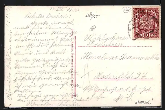 alte Ansichtskarte, gelaufen 1917, Eckknicke li., guter Zustand