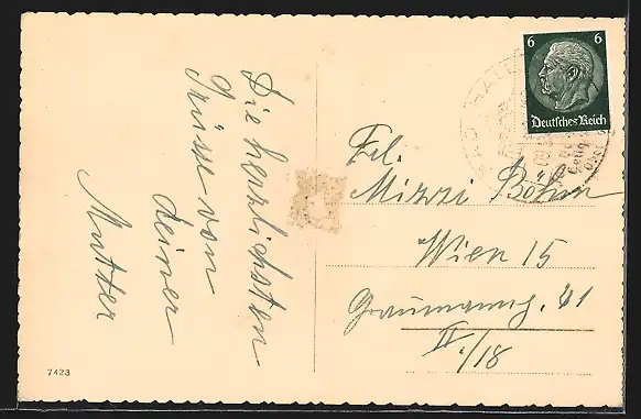 alte Ansichtskarte, gelaufen, rückseitig Klebe- und Papierreste, rückseitig Oberflächenschaden, guter Zustand