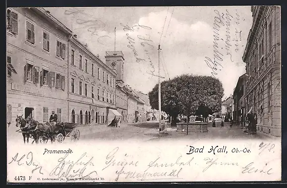 AK Bad Hall /Ob.-Oe., Promenade mit Brunnen