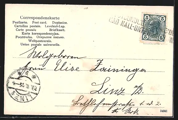 alte Ansichtskarte, gelaufen 1905, guter Zustand