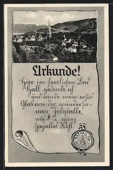 AK Bad Hall, Ortsansicht mit Kirche, Urkunde