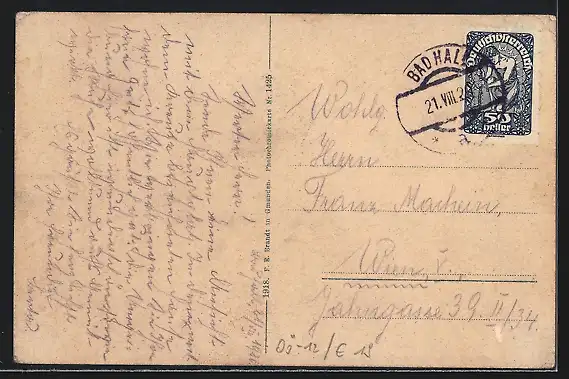alte Ansichtskarte, gelaufen 1920, Eckknicke re. unten und li. oben, Oberflächenschaden oben mittig