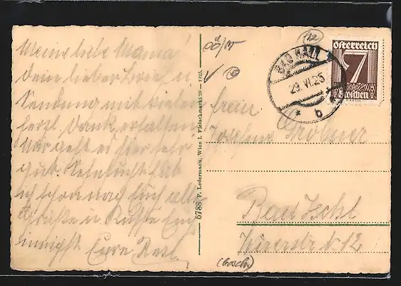 gelaufen 1925, Eckknick unten links, guter Zustand