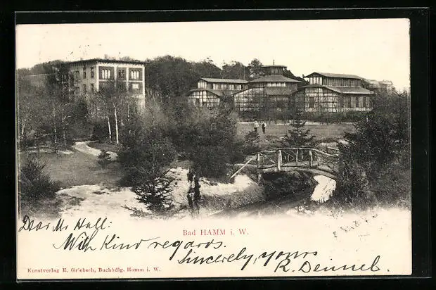AK Bad Hamm i. W., Ortspartie mit Brücke