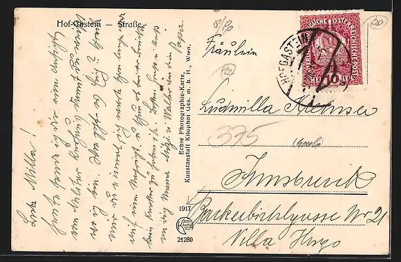 alte Ansichtskarte, gelaufen 1917, guter Zustand