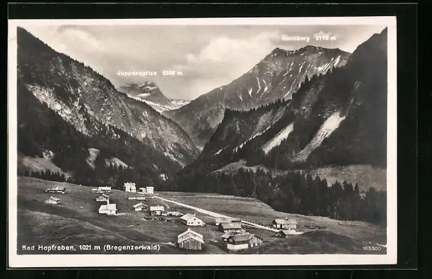 AK Bad Hopfreben /Bregenzerwald, Panorama mit Juppenspitze und Hochberg