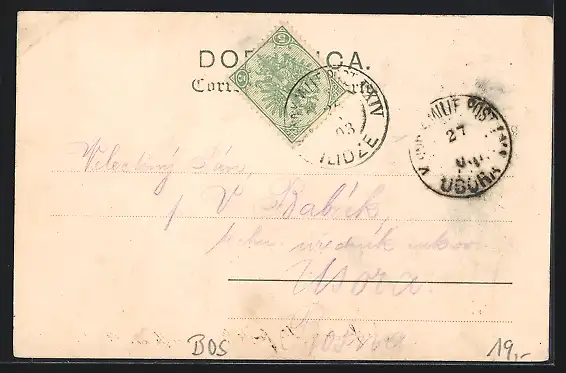 gelaufen 1903, Eckknick re. oben, guter Zustand