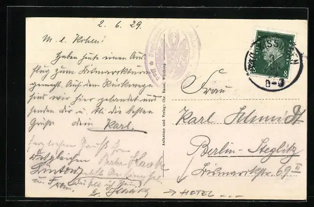 alte Ansichtskarte, gelaufen 1929, Abriebspur oben li., guter Zustand