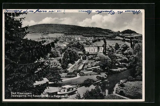AK Bad Kissingen, Saalepartie mit Rosengarten und Regentenbau