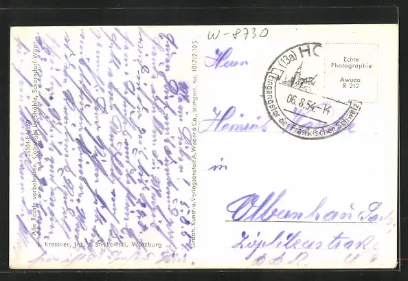 alte Ansichtskarte, gelaufen 1954, Briefmarke entfernt, sonst guter Zustand