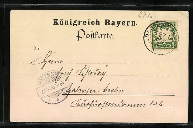 alte Ansichtskarte, gelaufen 1906, Stempelspur, guter Zustand
