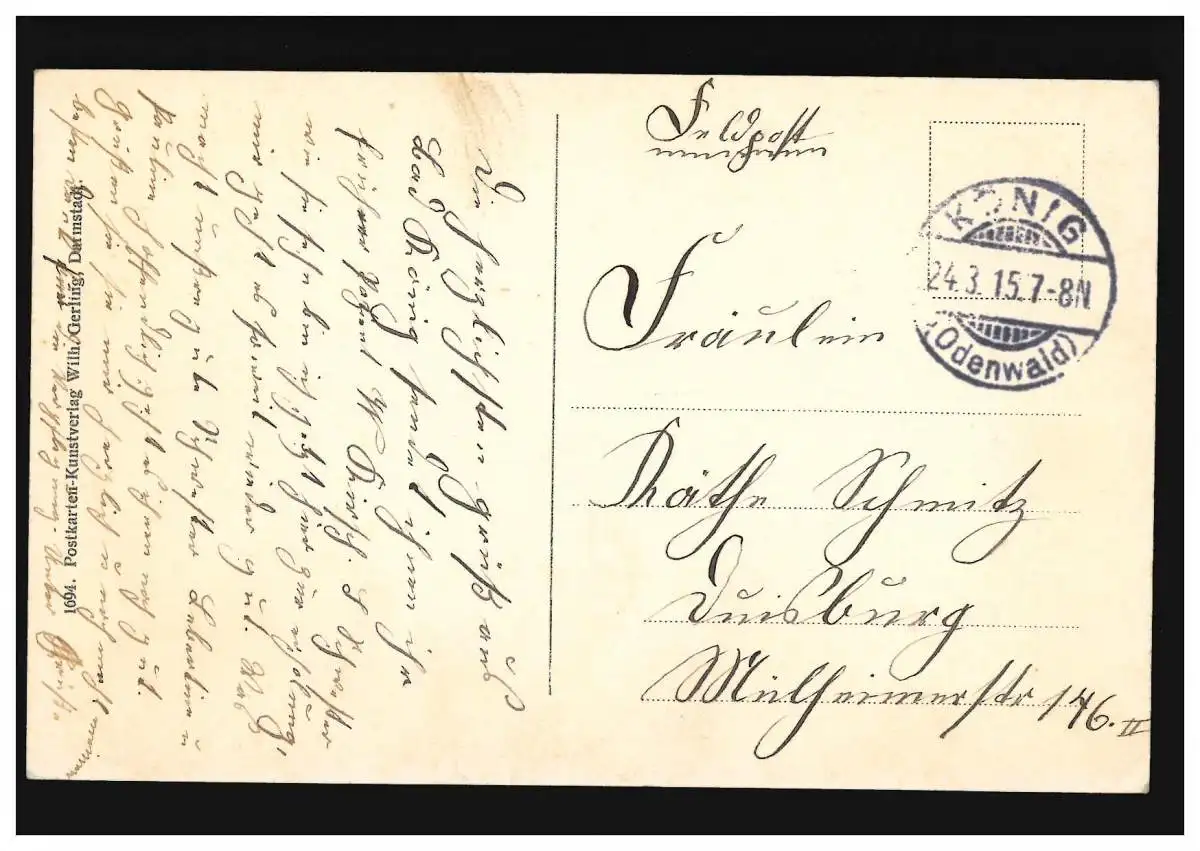 AK Bad König im Odenwald Blick ins Mümlingtal, Feldpost 24.3.15