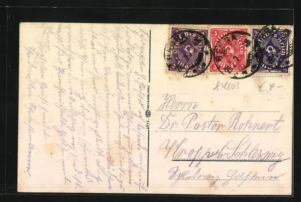 alte Ansichtskarte, gelaufen, Eckknicke re., Stempelspur, guter Zustand
