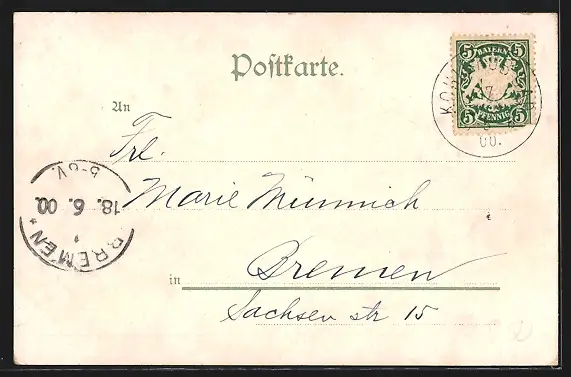 alte Ansichtskarte, gelaufen 1900, guter Zustand