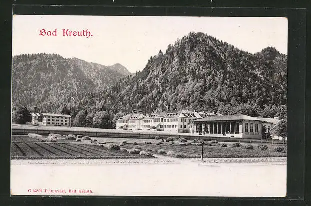 AK Bad Kreuth, Ortspartie mit Grünanlage