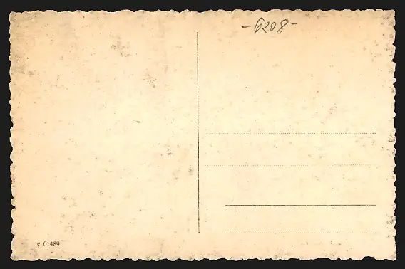 Personenbezogene Daten auf der Rückseite der Karte wurden durch blauen Textmarker unkenntlich gemacht. Die blauen Stellen sind auf die Vorderseite durchgeweicht und wirken sich negativ auf das Postkartenfoto aus