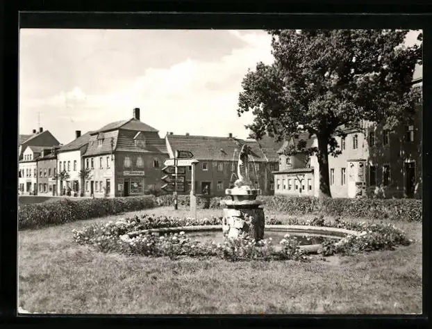 AK Bad Lausick, Untermarkt mit Springbrunnen