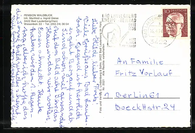 alte Ansichtskarte, gelaufen 1974, guter Zustand
