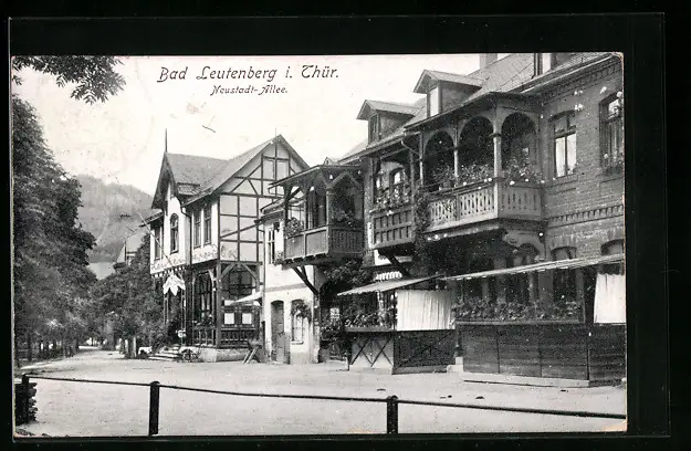 AK Bad Leutenberg i. Thür., Neustadt-Allee mit Fachwerkhaus
